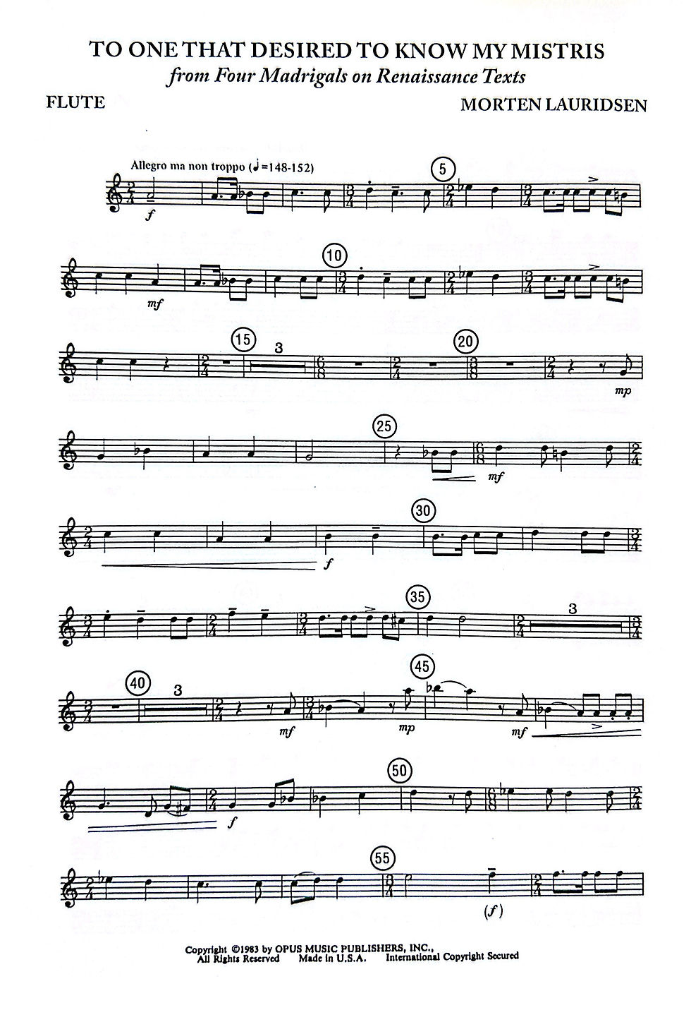 Opus Music Publishers is proud to represent composer Morten Lauridsen, one of the most celebrated and acclaimed composers of our time. Morten has been the recipient of numerous awards and honors, including those from ASCAP, Meet the Composer, Chorus America, and the American Choral Directors Association (ACDA). He is a native of the Pacific Northwest and is retired faculty at the University of Southern California in Los Angeles, CA. As a student of Ingolf Dahl, Halsey Stevens, and Robert Linn, Morten's music reflects his diverse background and has been acclaimed for its beauty, expressivity and sensitivity. We invite you to explore the works of Morten Lauridsen and experience the beauty of his music.